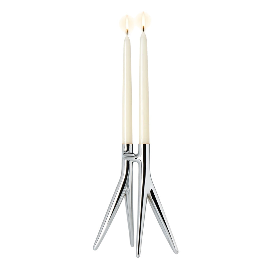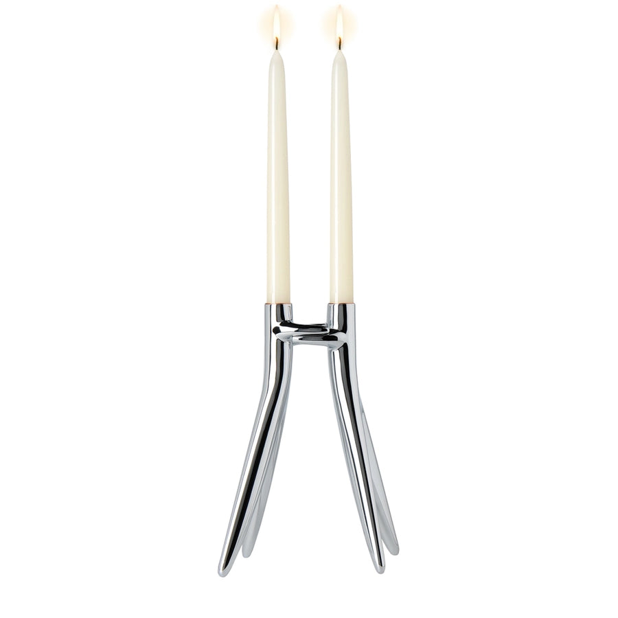 Abbracciaio es una fusión de aluminio de dos perfiles que, colocados uno frente al otro, se transforman en un abrazo de amor. Las dos estructuras que componen el candelabro están enganchadas de modo que permiten la estabilidad del objeto. Diseñador: Philippe Starck Medidas: 20 x 25 x 11 cm