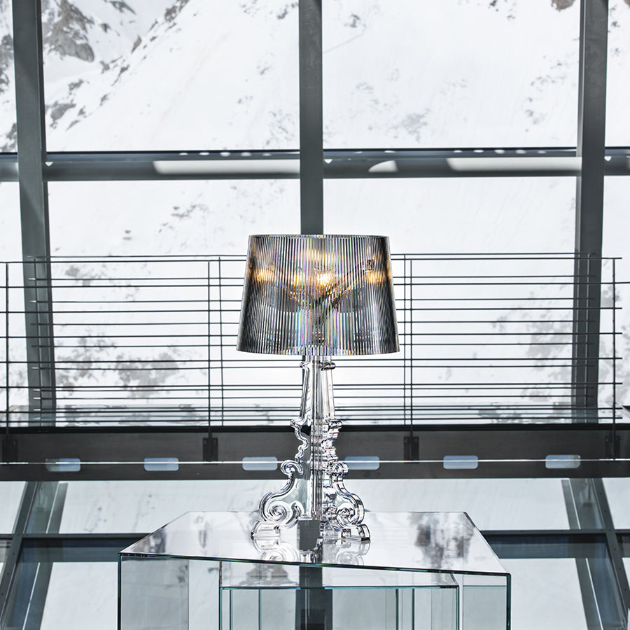 LLa lámpara Bourgie combina la elegancia barroca con la innovación contemporánea. Su base de estilo clásico, formada por tres elementos entrelazados, se une a una pantalla plisada que multiplica los reflejos al encenderse. Gracias a su sistema regulable, puede ajustarse a tres alturas diferentes (68, 73 y 78 cm), adaptándose a cualquier espacio y estilo. Diseñado por Ferruccio Laviani. Medidas: 78 x 37 cm