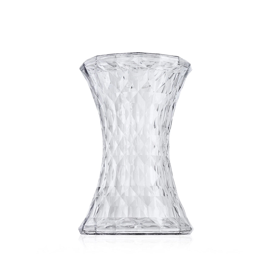 Stone es un taburete de forma esencial, lineal y simétrica que recuerda la de un reloj de agua pero cuya superficie tiene un aspecto completamente extraordinario: irregular, constituida por muchas caras geométricas reflectantes que crean un efecto de luz del que nace un juego de colores de lo más particular que hacen que resulte similar a un diamante. Diseñado por Marcel Wanders. Medidas: 45 x 30 cm
