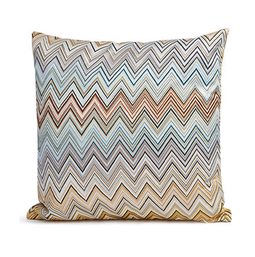 Cojín decorativo relleno de plumas de pecho de ganso de la marca italiana Missoni Home.