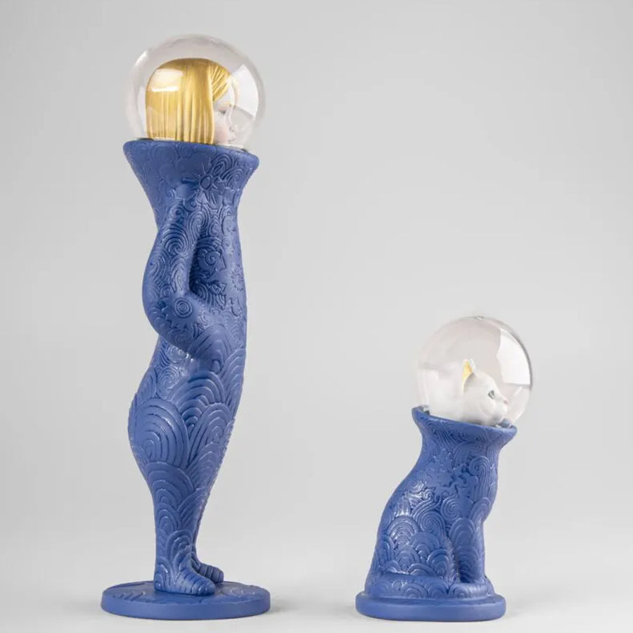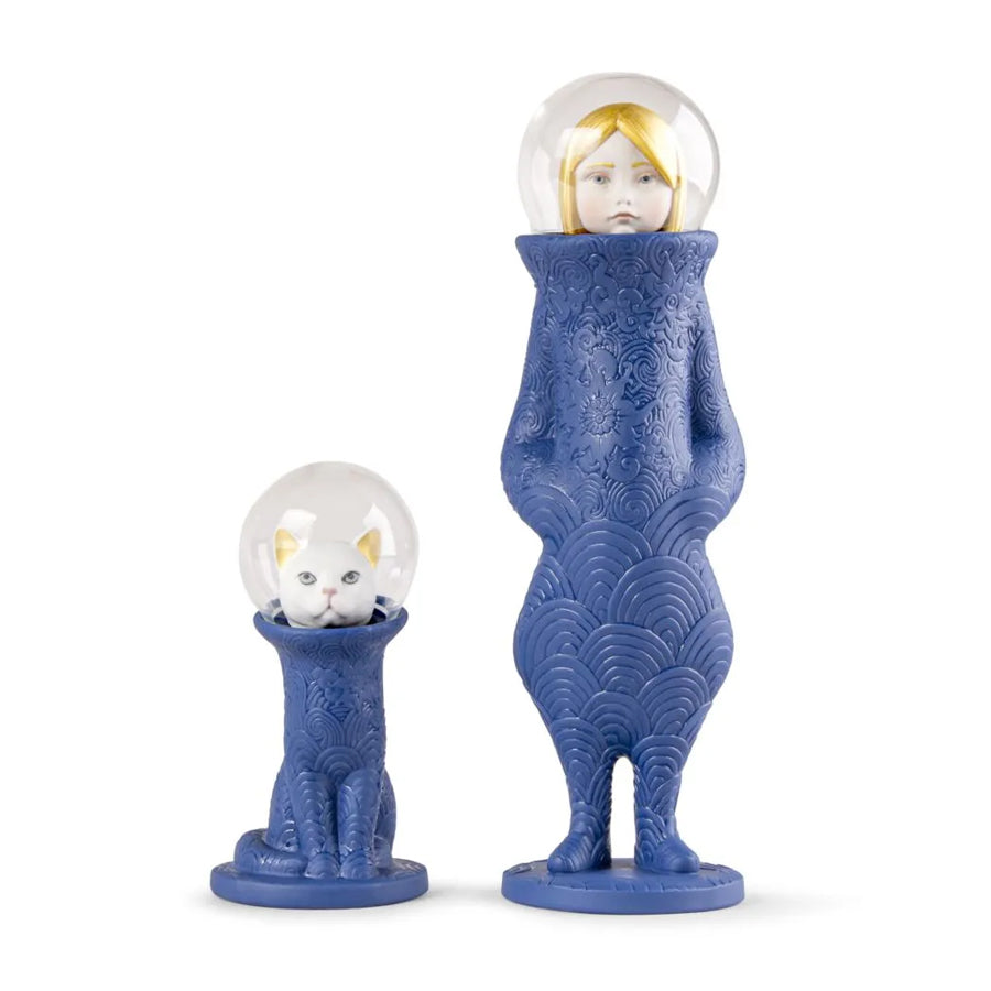 La niña y el gato forman parte de la colección Cosmic, una serie inspirada en la importancia de confiar en los caminos que emprendemos y en el valor de quienes nos acompañan, inspirándonos e impulsándonos a llegar más lejos.Cada pieza está modelada a mano en porcelana mate, con un minucioso trabajo de grabado que recorre sus formas como un mapa imaginario. Inseparables en esta travesía, la niña y su gato visten trajes con motivos orgánicos que evocan ondas, constelaciones y corrientes galácticas. EscultorJosé Santaeulalia. Medidas: 32 x 18 x 10