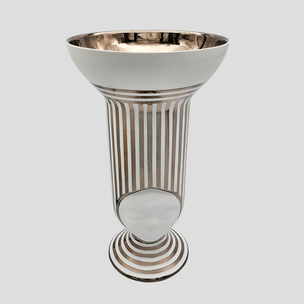 La colección Sisters está formada por cinco jarrones esculturas realizados en cerámica blanca. Las cinco piezas están disponibles en diferentes acabados, todas ellas están realizadas y pintadas a mano. El diseño de esta elegante y tierna colección viene de la mano de la artista Pepa Reverter, quien dice de estas piezas que son un homenaje a las mujeres de todas las culturas y de todos los tiempos. Han sido diseñadas en Barcelona y esto es lo que les aporta un punto de vista cosmopolita y mediterráneo ante la vida.Medidas: 21.5x21.5xh.38.5 Diseñadora: Pepa Reverter.
